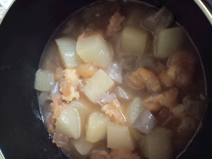 頂いたスジ肉をコトコト煮て(5時間)