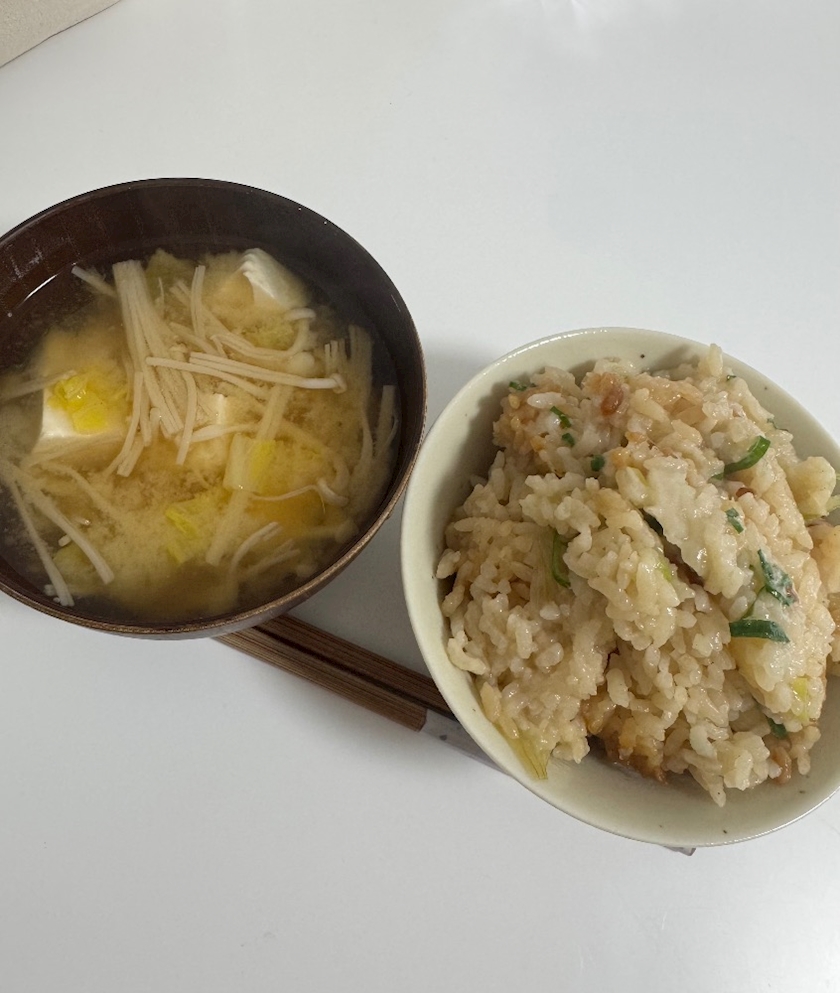 油揚げと新玉ねぎの炊き込みご飯した🧅