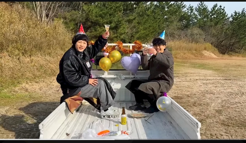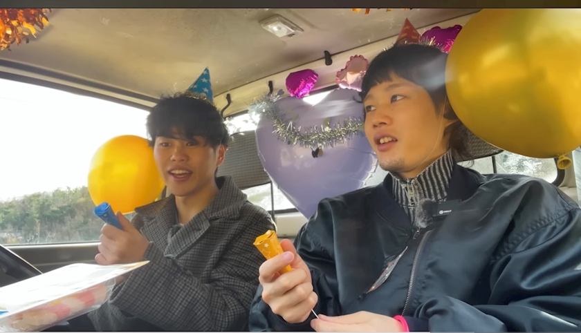 車内でクラッカー鳴らして