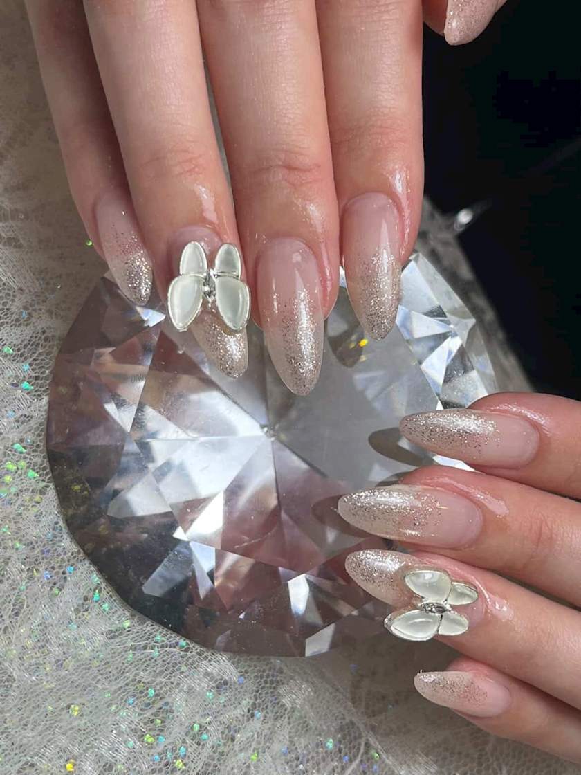 シンプルなラメグラデにポイントでついてるのが