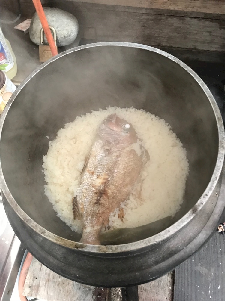 お釜で炊いた鯛飯 絶妙に美味しかった。