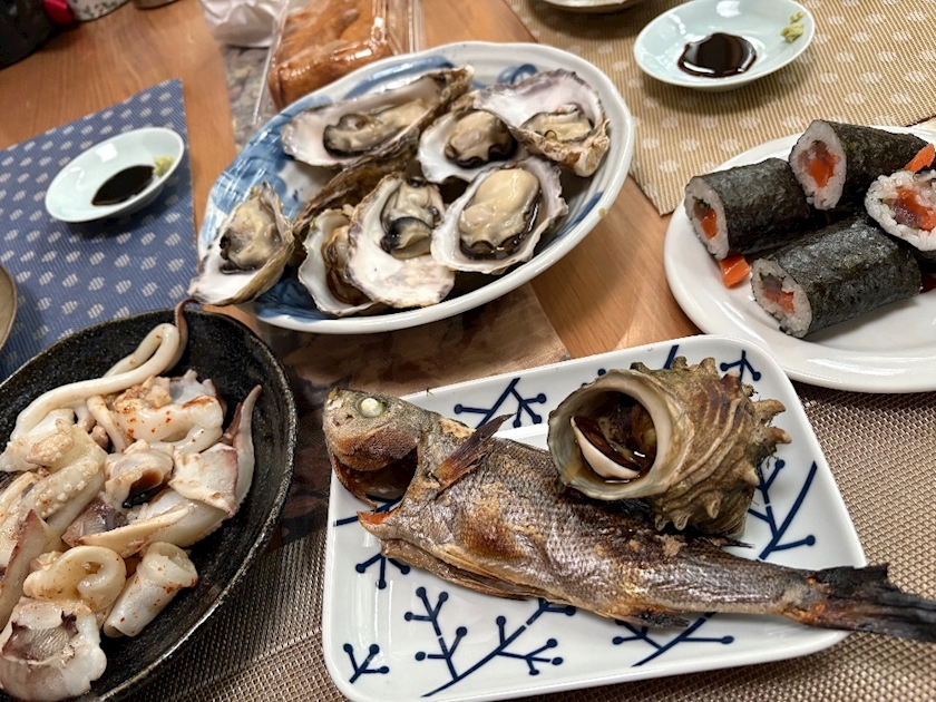 お昼から🦪、サザエ、🐟イサキ