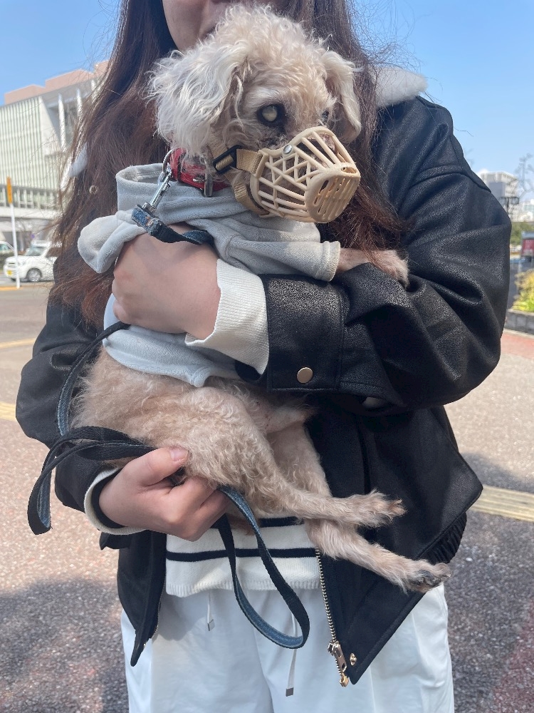 この子は噛むので口輪