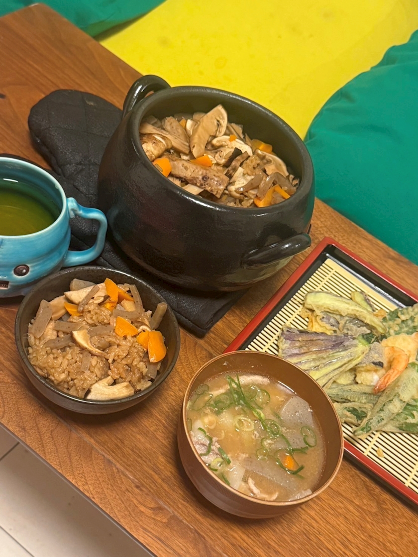 そしたら、かしわ飯・豚汁・天ぷら作ってくれた🍤