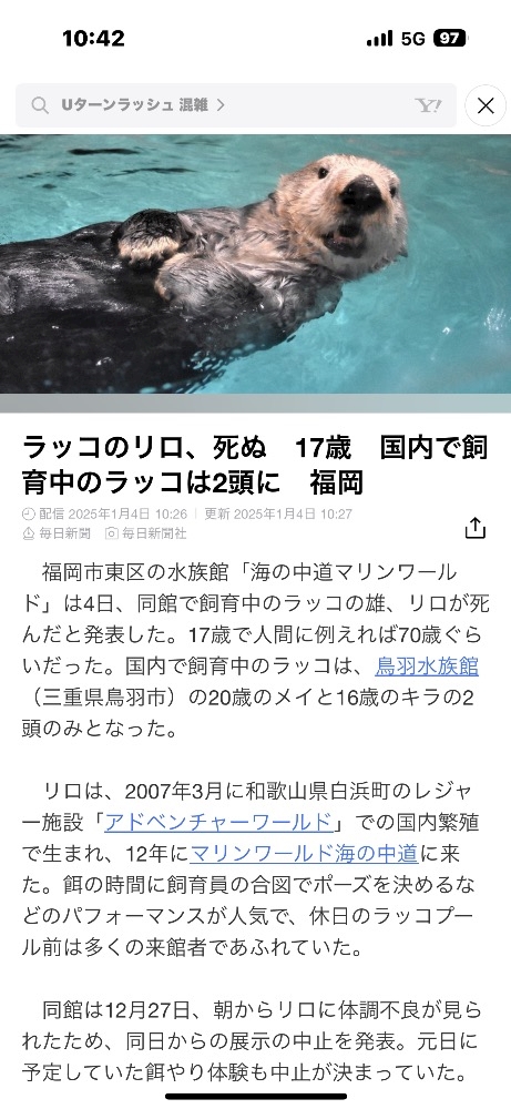 福岡からラッコがいなくなった🦦