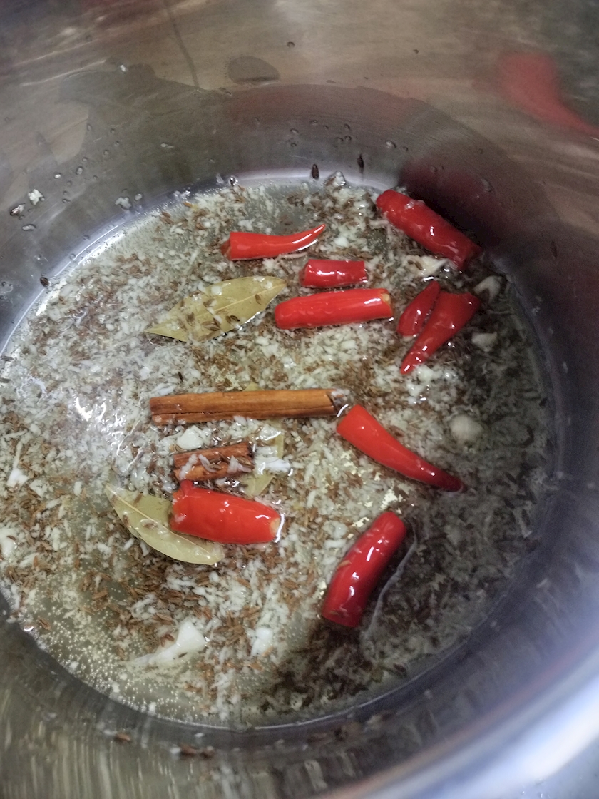(スパイスの香りを油にうつす工程)