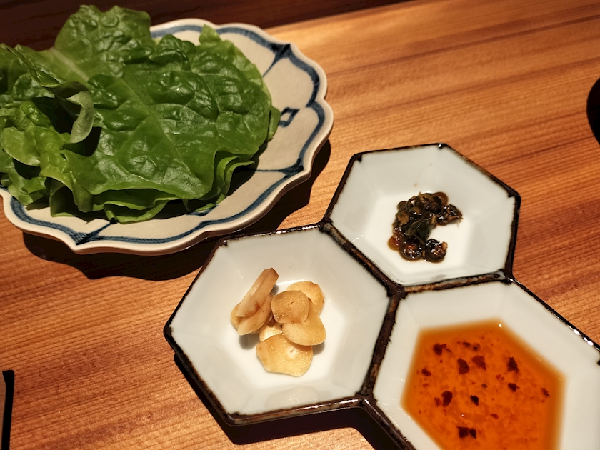 塩ごま油、にんにく、サンチュ