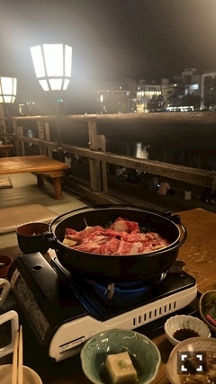 そして、初めて川床ですき焼きを食べたよ𓌉𓇋 🥩