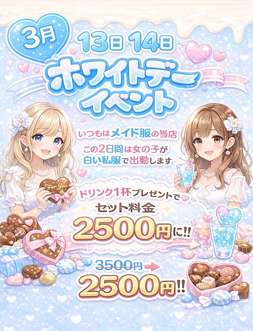 今日明日はホワイトデーイベで私服出勤です🍫🤍