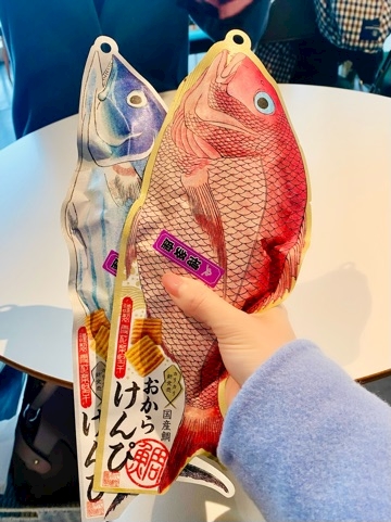 これ、お土産です🐟袋無くてすみませんて