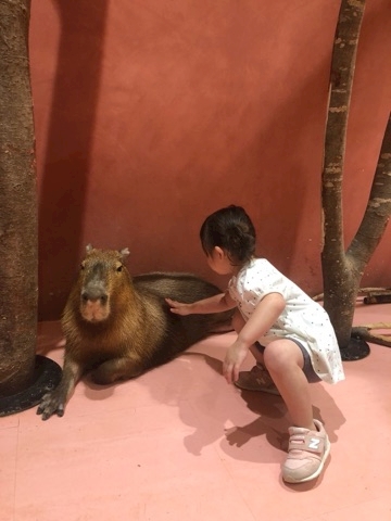 カピパラ触る姪っ子