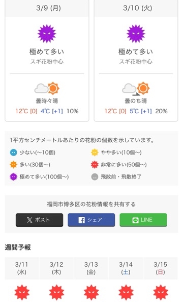 今週の花粉予報見たら