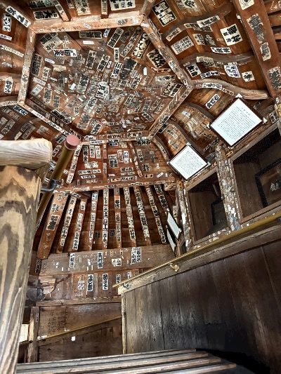 天井にはたくさんのお札があって
