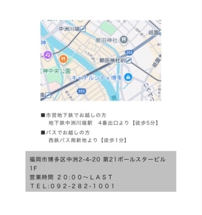 福岡県福岡市博多区中洲2-4-20 第21ポールスタービル1F |