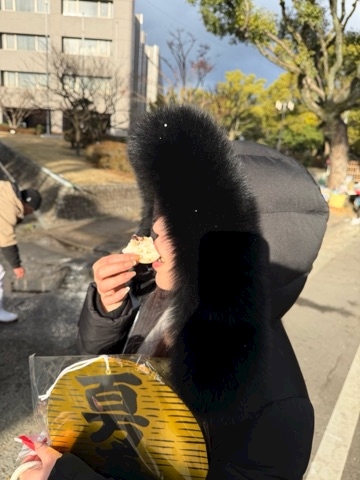 梅ヶ枝餅食べてる