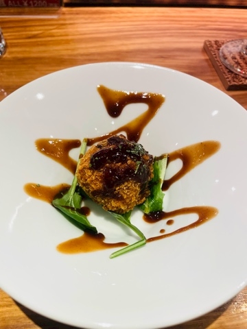 お通しはメンチカツ