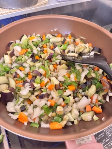 炒めながら