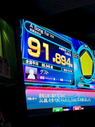 カラオケで採点勝負した時のやつ!!!!