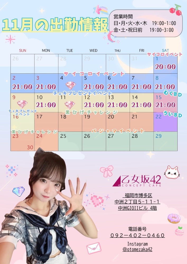 11月のカレンダー出したよ🔖.·🩵 - むく💎乙女坂42 - 乙女坂42・オトメザカ フォーティツー - 中洲のコンカフェ
