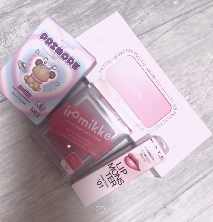 クリオのパレットとリプモンの新色とチークとカラコン買った〜🩷