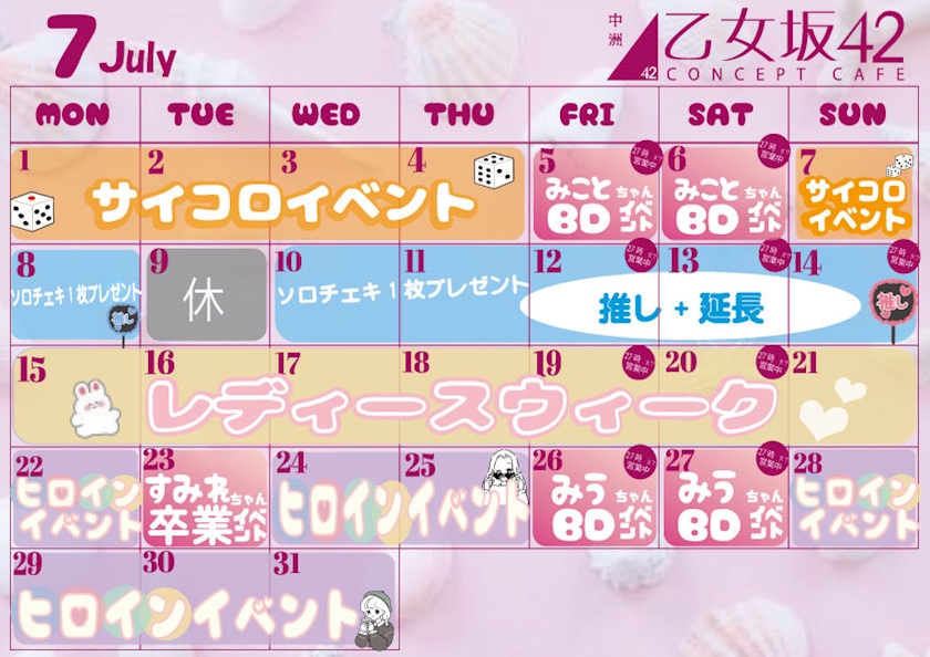 🎀 7月15日 (月) 🎀 - スタッフ🎀 - 乙女坂42・オトメザカ フォーティツー - 中洲のガールズバー
