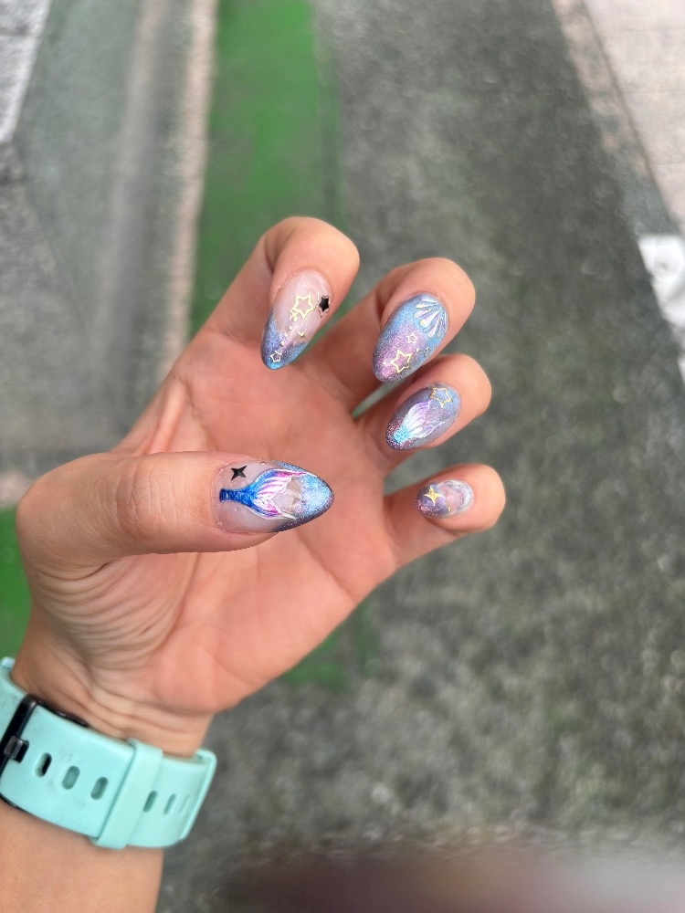 ブルーのマグネットネイルに