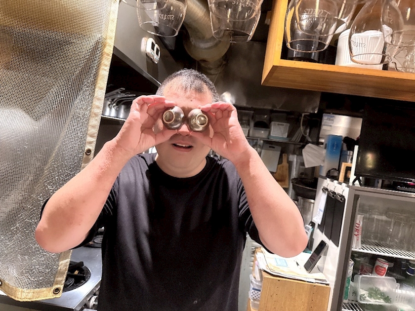 砂ずりのアヒージョを食べながら