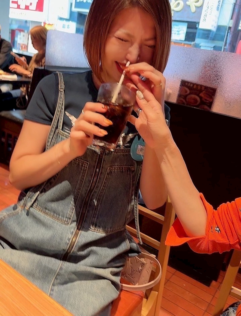 美ゆきさんが、鼻にストロー