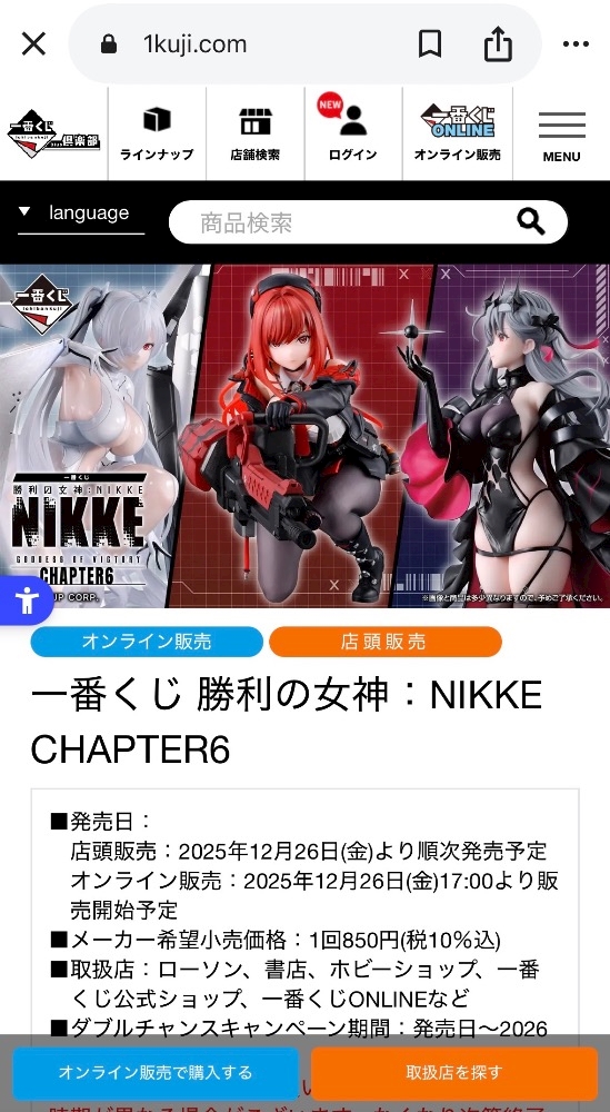 NIKKEの一番くじをずーっと探してて。