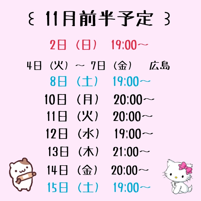 11月前半の出勤予定です!