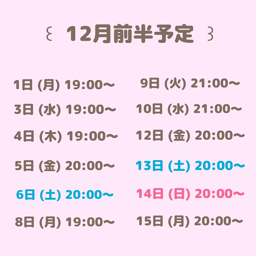 こちら12月前半の出勤予定です!