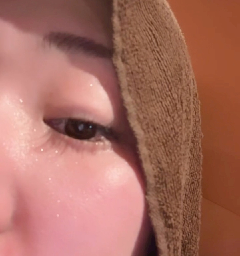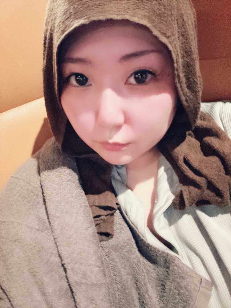 顔にタオル掛けながら