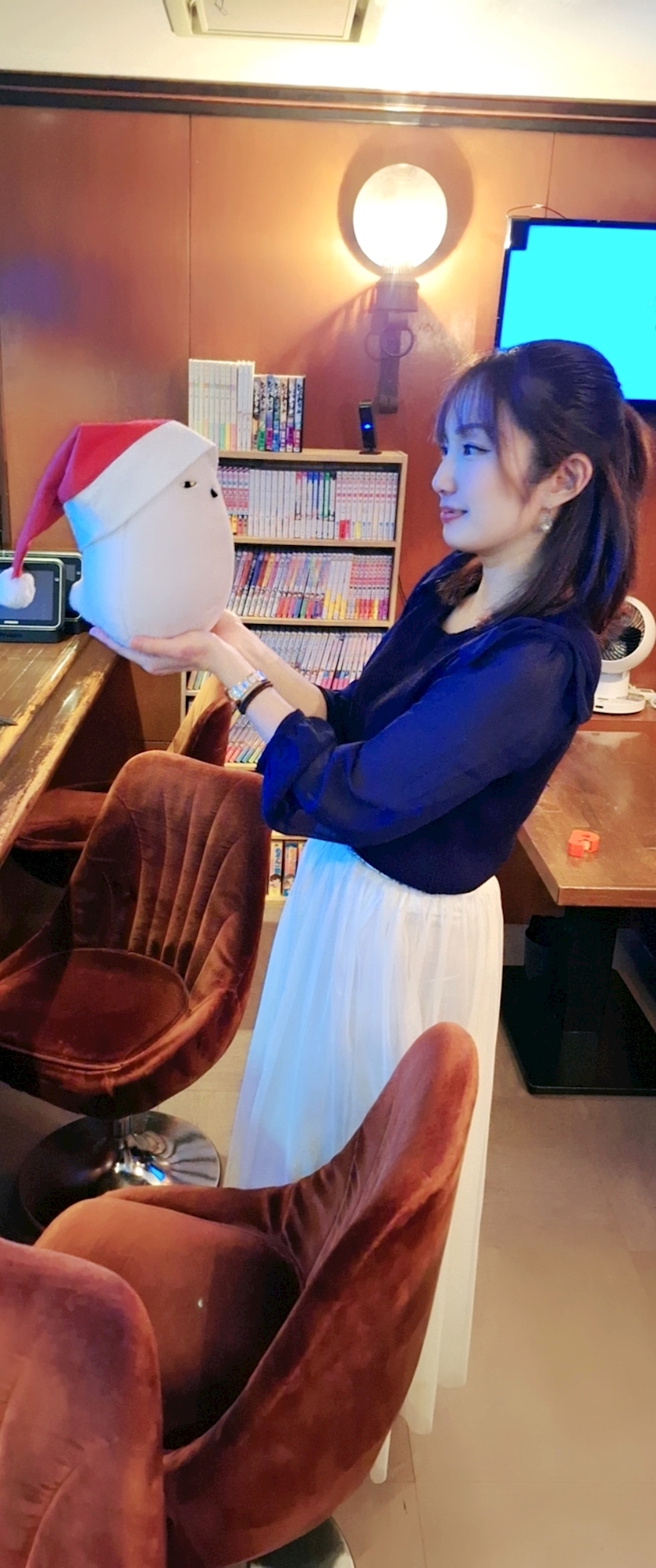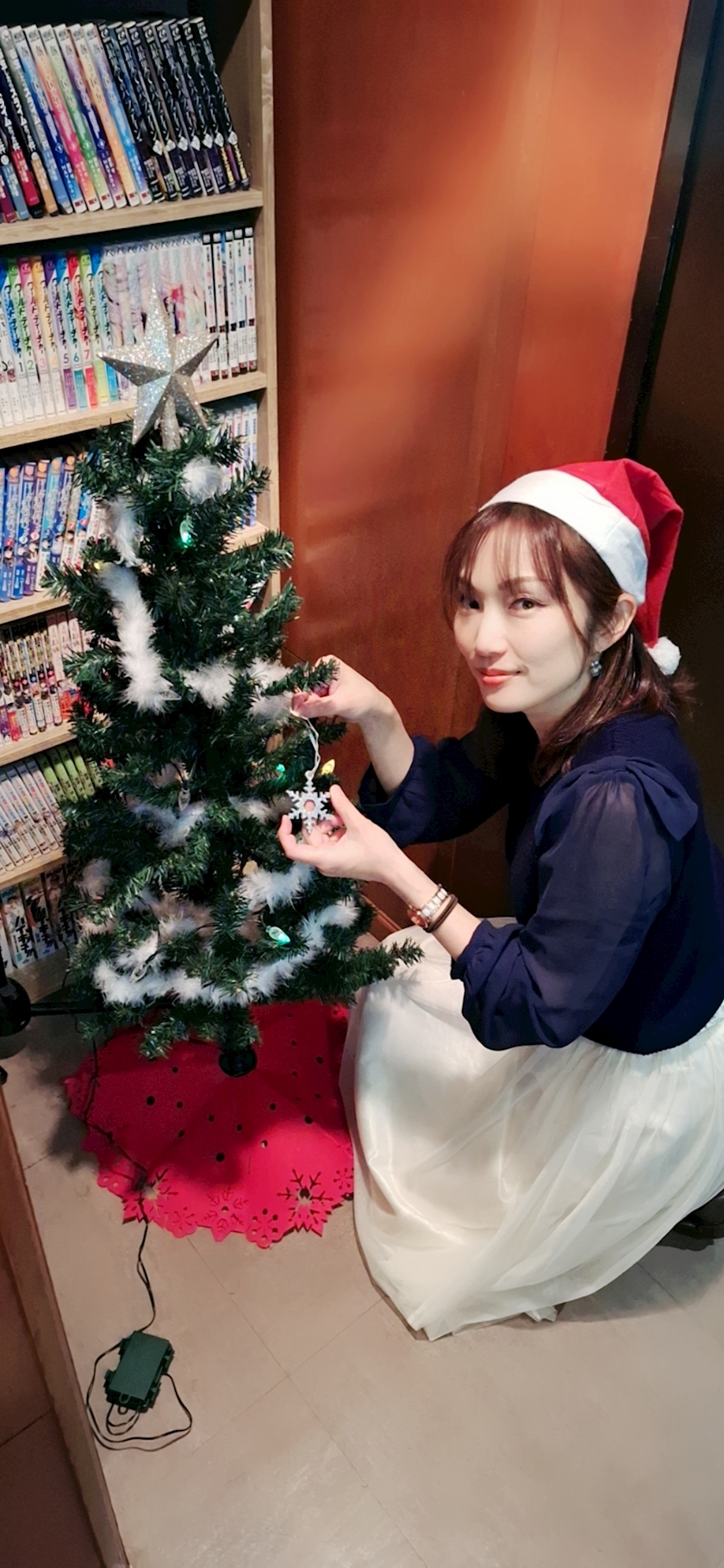 飾り付け中〜(気が早すぎるサンタ帽)