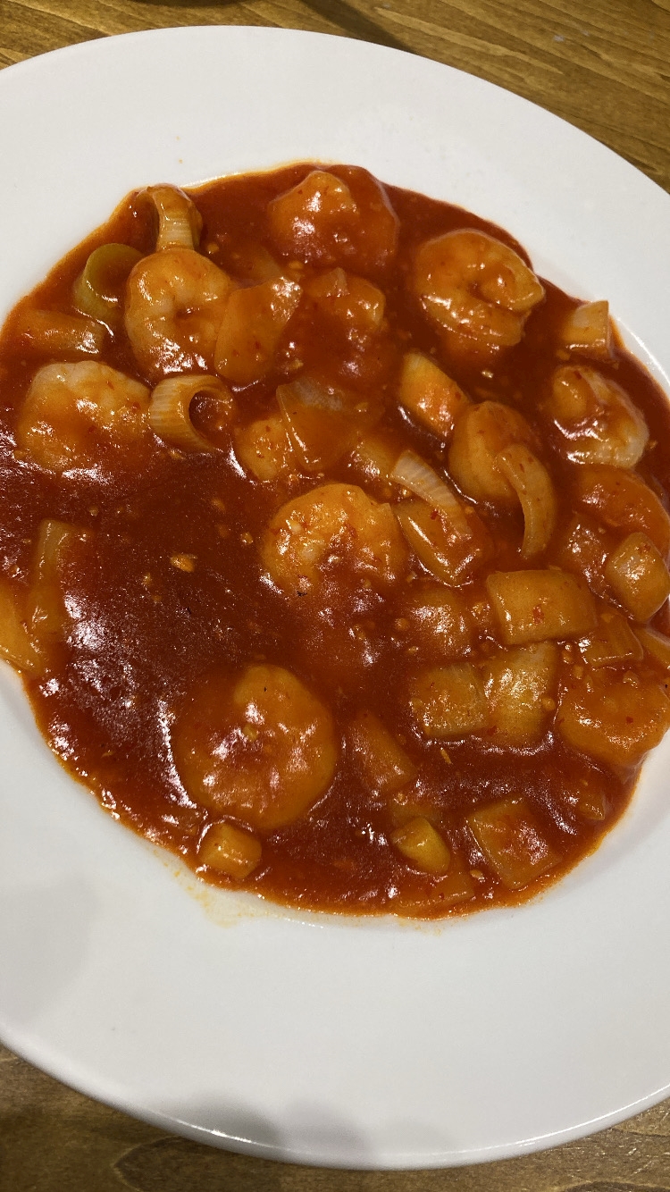 エビチリはちゃんとピリ辛で激うま❣️👍