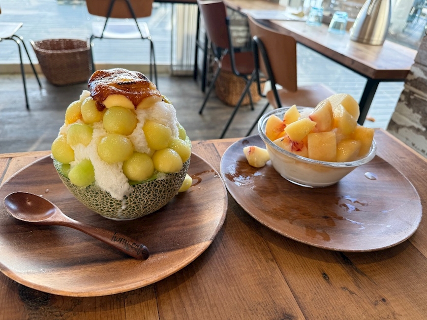 私のかき氷が届くまで待っててくれたから桃はデロデロ꒷꒦