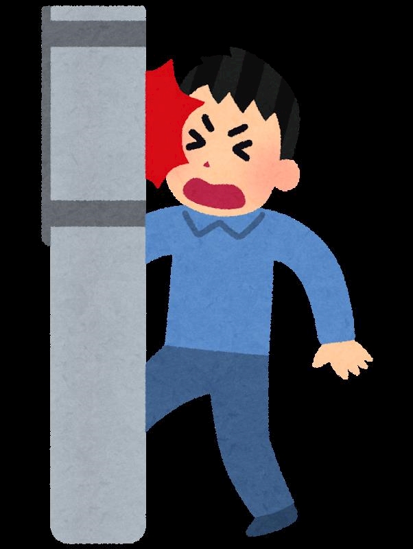 電柱にぶつかって