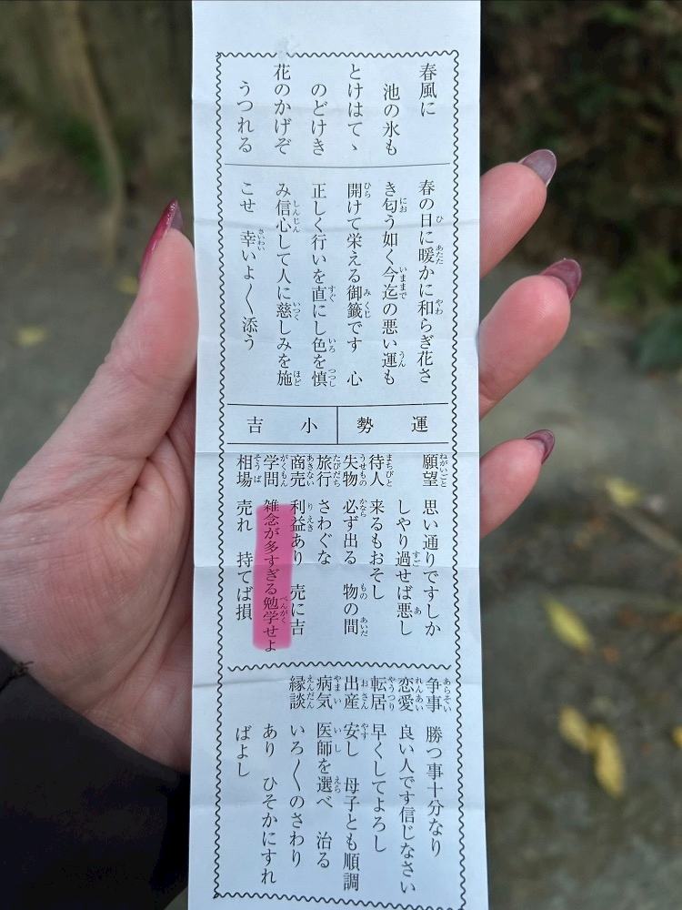 おみくじを引いたのね⛩️