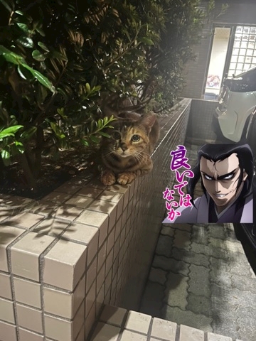 先日帰ってたらにゃ~んって目の前に現れていなくなった!!と思ったら登ってお座りしてた、、、