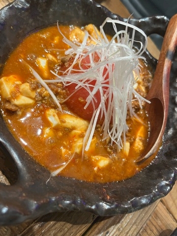 麻婆豆腐好きなんで頼んでみたらなんとトマト潰して食べるらしくて変わった麻婆豆腐だったんですけどめっちゃ美味しかったです💗💗