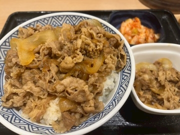 深夜に定食頼んでフードファイターしよーと思ったんだけどいつも食べてる定食が時間外で普通に牛丼にしたよ☺️ちゃんと大盛り☺️
