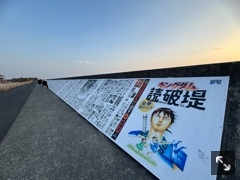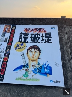 海沿いの堤防にキングダムの今までの漫画が