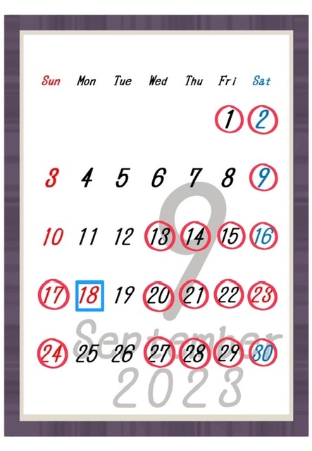 🍺9月の出勤・お休みカレンダー🍺