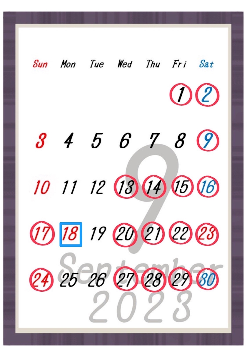 💌9月の出勤・お休みカレンダー💌