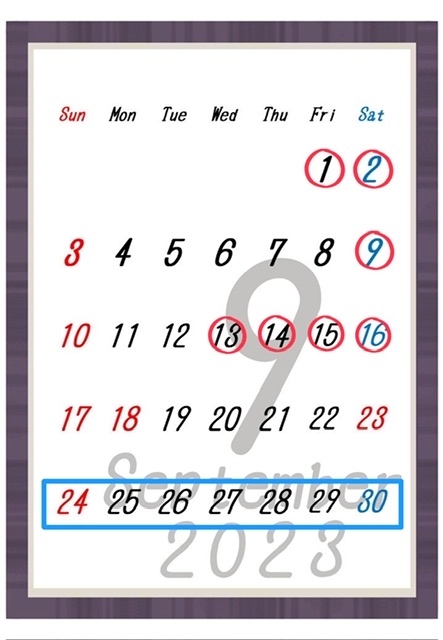 🦷9月の出勤・お休みカレンダー🦷
