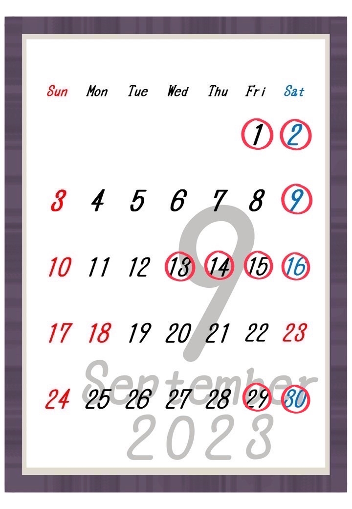 💎9月の出勤・お休みカレンダー💎
