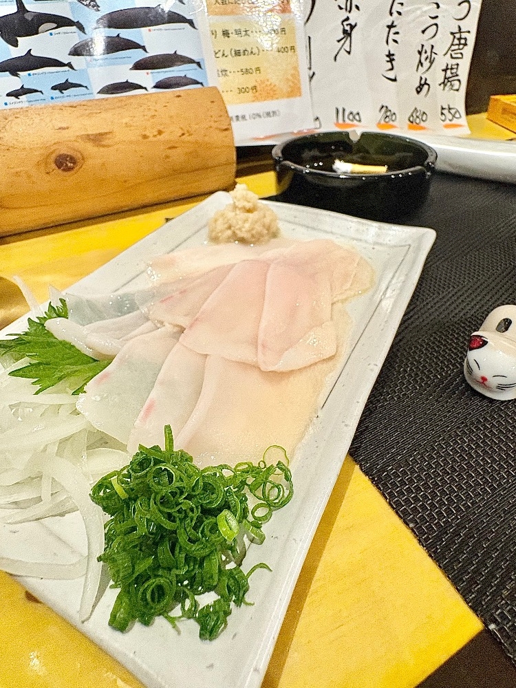 先日クジラの刺身が美味しいお店に行きました🐳