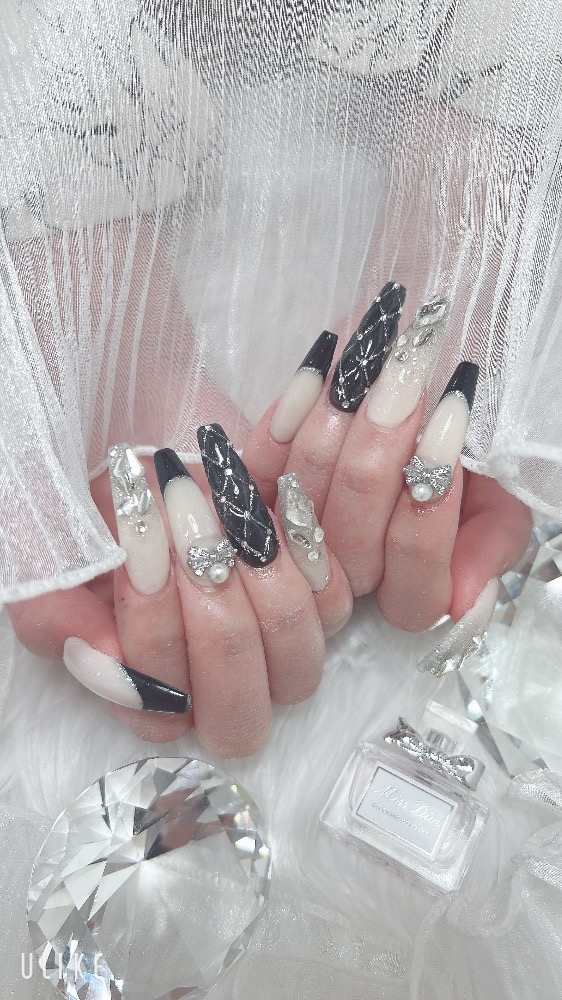 今回のネイルは黒とキラキラのネイル❕