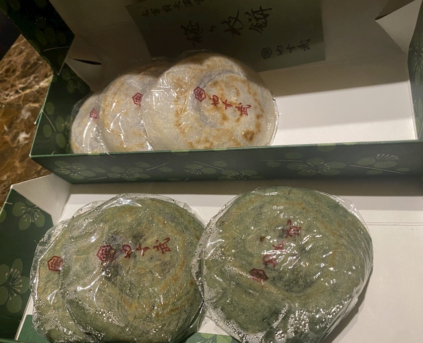 🦑さんにいただいた美味しい梅が枝餅食べながら、