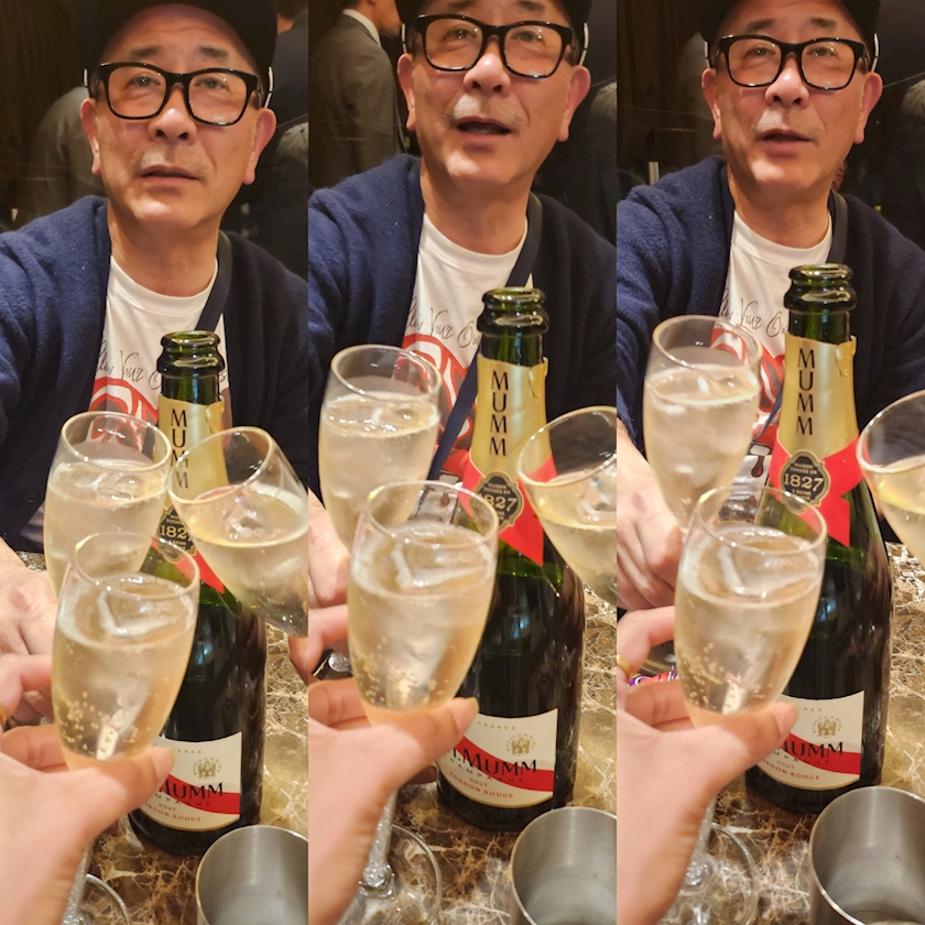 出勤一発目にシャンパン