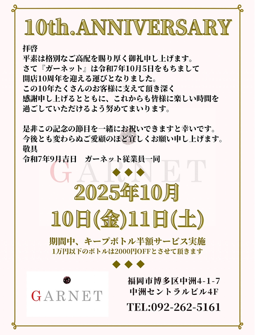🌟10月5日🌟 - 💎うーたん🐒✨ - GARNET・ガーネット - 中洲のスナック